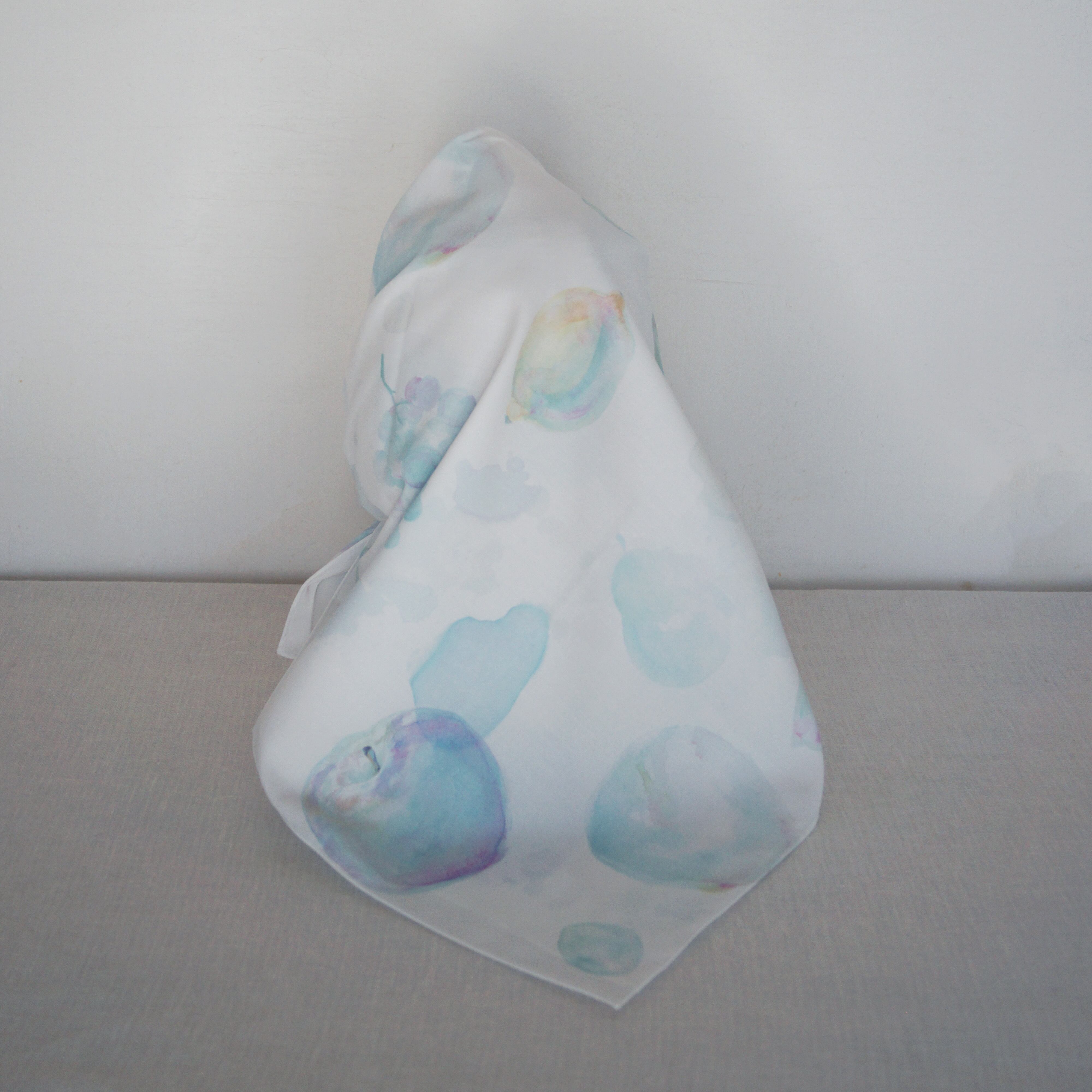 ドローイングを鮮明にプリントした大判のスカーフです。