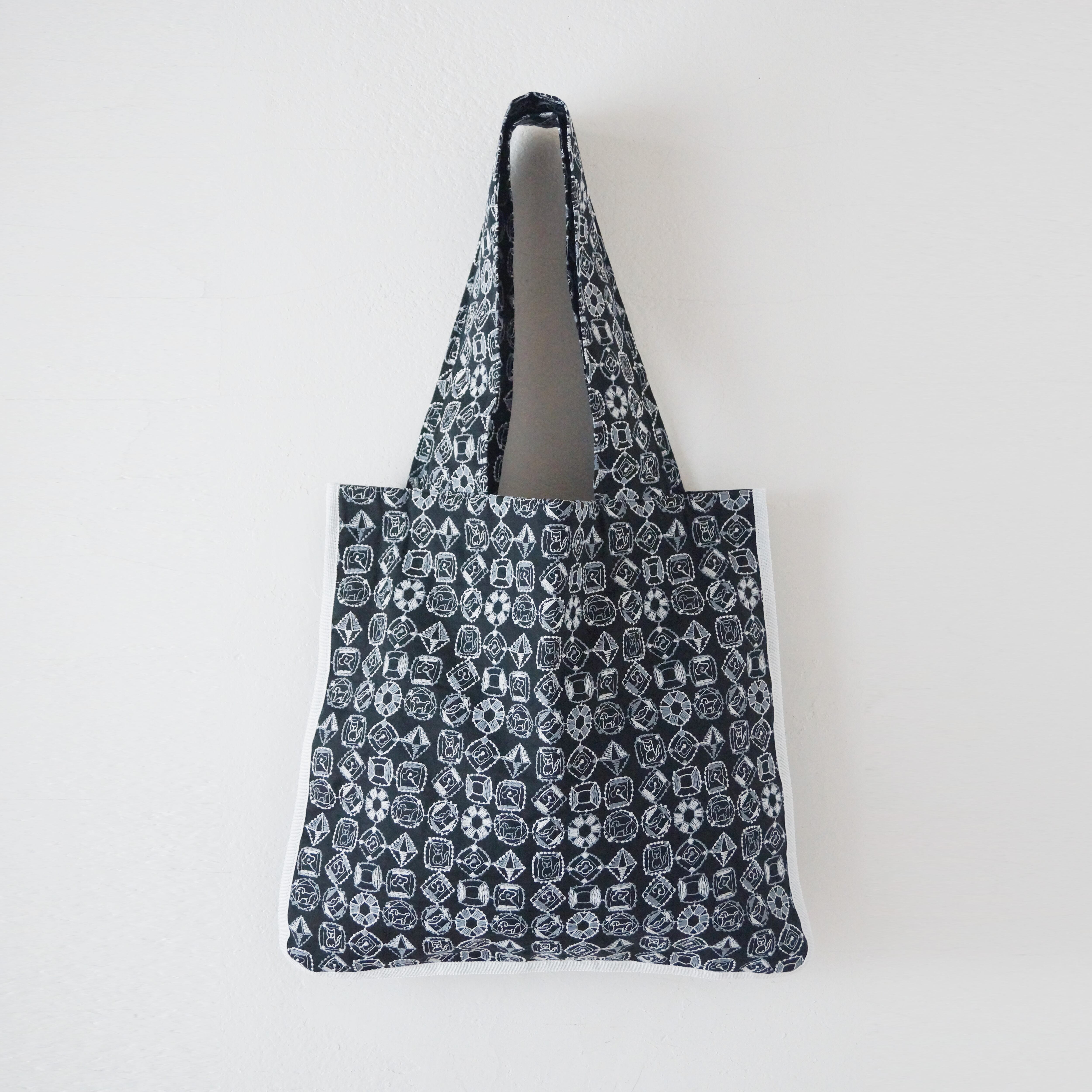 diamondのテキスタイルのトートバッグ。表面は刺繍生地、裏面は無地です。
