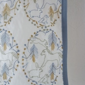 forest lakeのテキスタイルのミニトートバッグ。表面は刺繍生地、裏面は無地です。