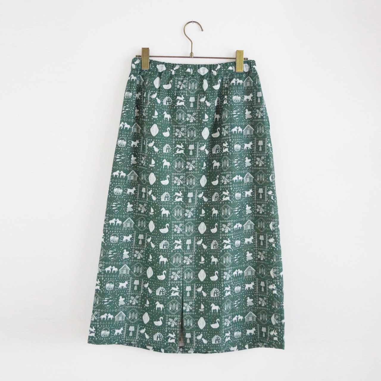 織物のテキスタイル「piece」(かけら)で仕立てたタイトスカートです。