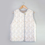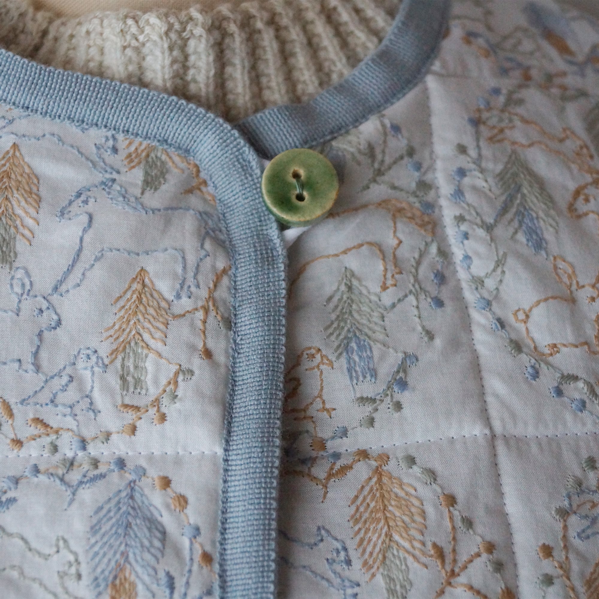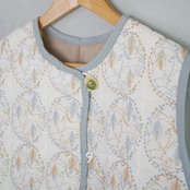 刺繍のテキスタイルを中綿のキルト仕立てにして暖かなベストを作りました。