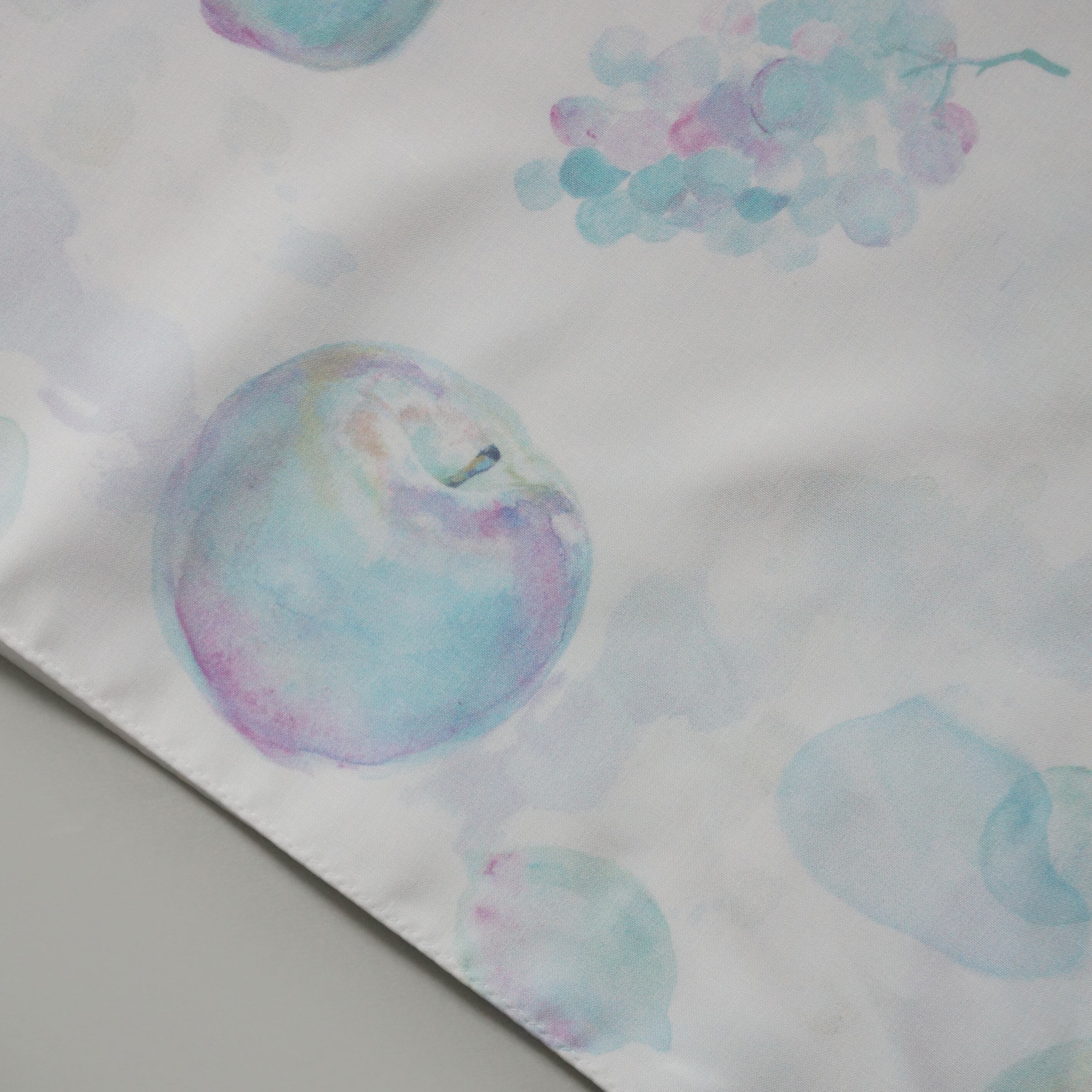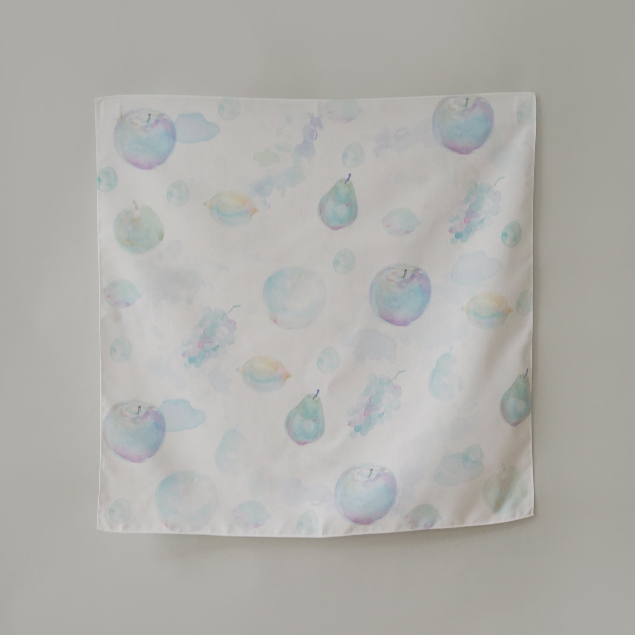 りんごやレモン、ぶどう、洋梨など果物をシャボン玉の泡のようなイメージで描きました。