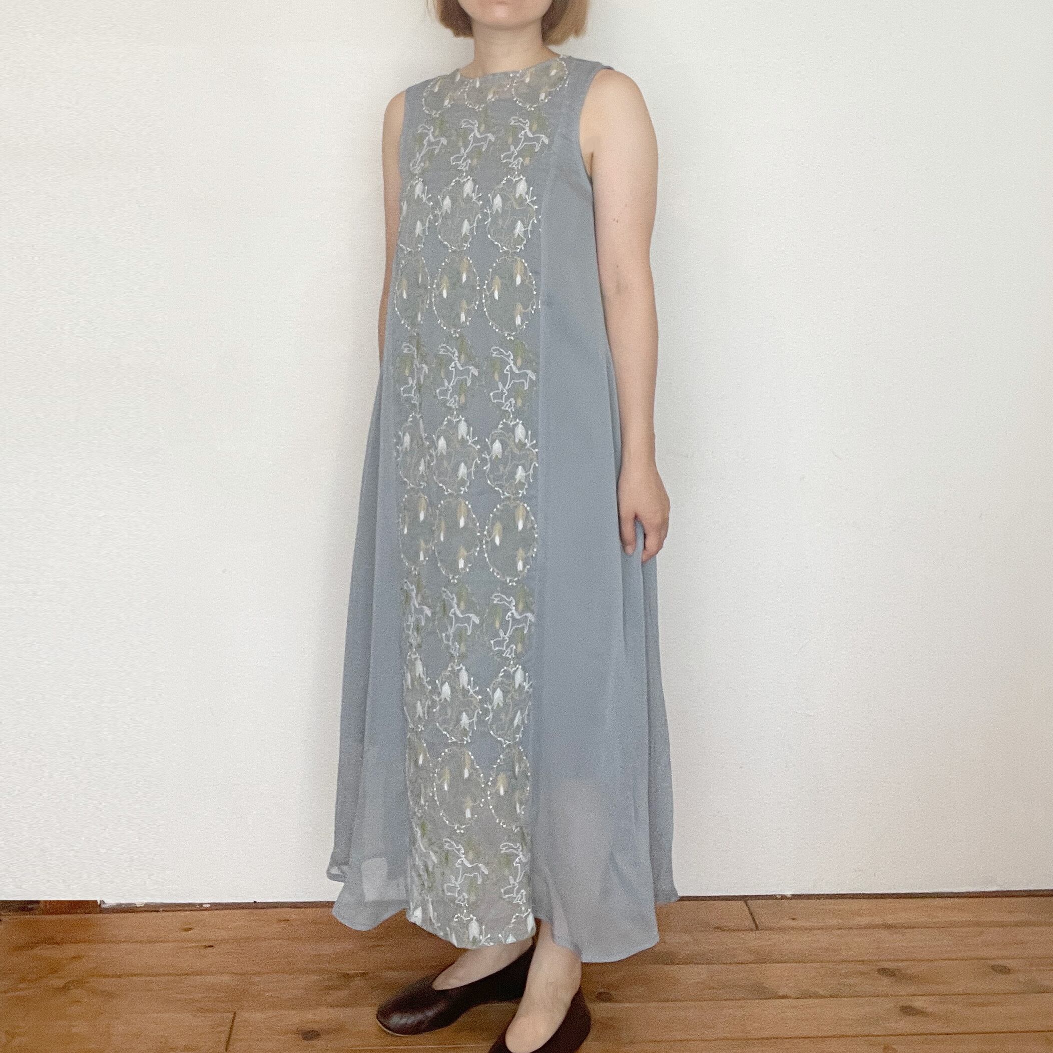 刺繍のテキスタイル、「森の湖」のノースリーブワンピース。